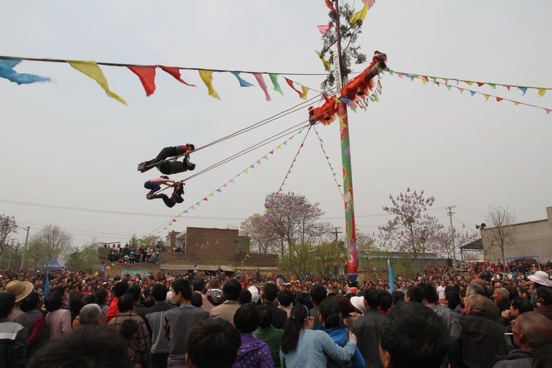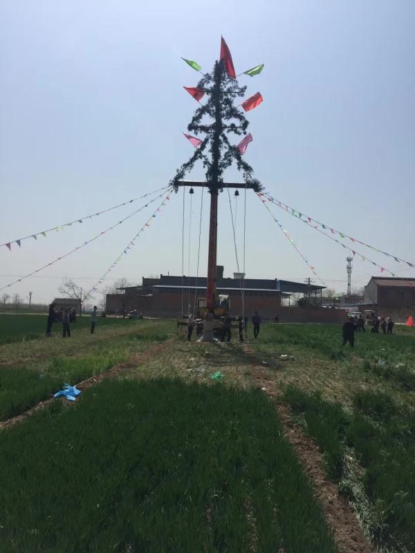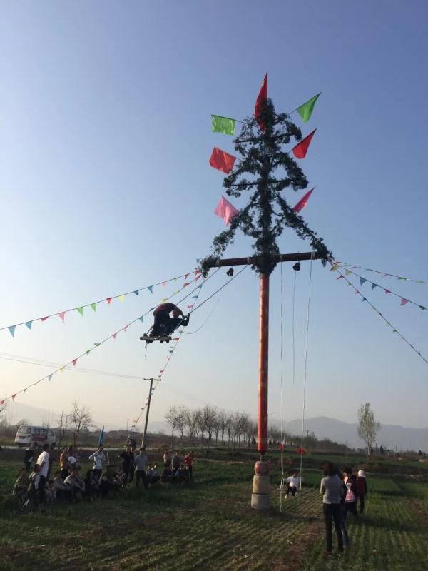 又因?yàn)榍迕鲿r(shí)節(jié),渭北地區(qū)干旱少雨,先輩們?yōu)榱似碛辏谇锴隙素Q立一根十幾米的木桿,刺向天空,意為“一桿戳破天,甘露降人間”,隨著社會(huì)的發(fā)展,祈雨的初衷已漸漸淡化,現(xiàn)在人們蕩秋千,更多的是強(qiáng)身健體,活躍生活,促進(jìn)鄉(xiāng)鄰和諧的民間活動(dòng)。