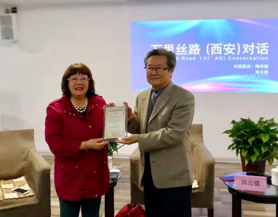 緣分就這樣將我們交織在一起。千緣萬緣,不都是絲路之緣嗎?臨別時,我送她一幅書法,是杜甫懷念李白的“渭北春天樹,江東日暮云,何時一樽酒,重與細論文?”是啊,什么時候再見,重又在一起切磋友誼與文事呢?我在絲綢之路的東方起點等著你。