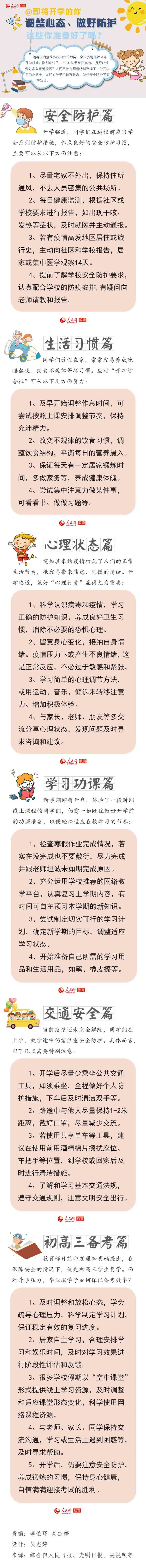 全省高三年級(含已報名參加高考的中等職業學校畢業年級學生)原則上由省上統籌于4月1日開學,有條件的學校應實行封閉式管理;初三年級由各市(州)統籌確定,可安排于4月7日開學復課。