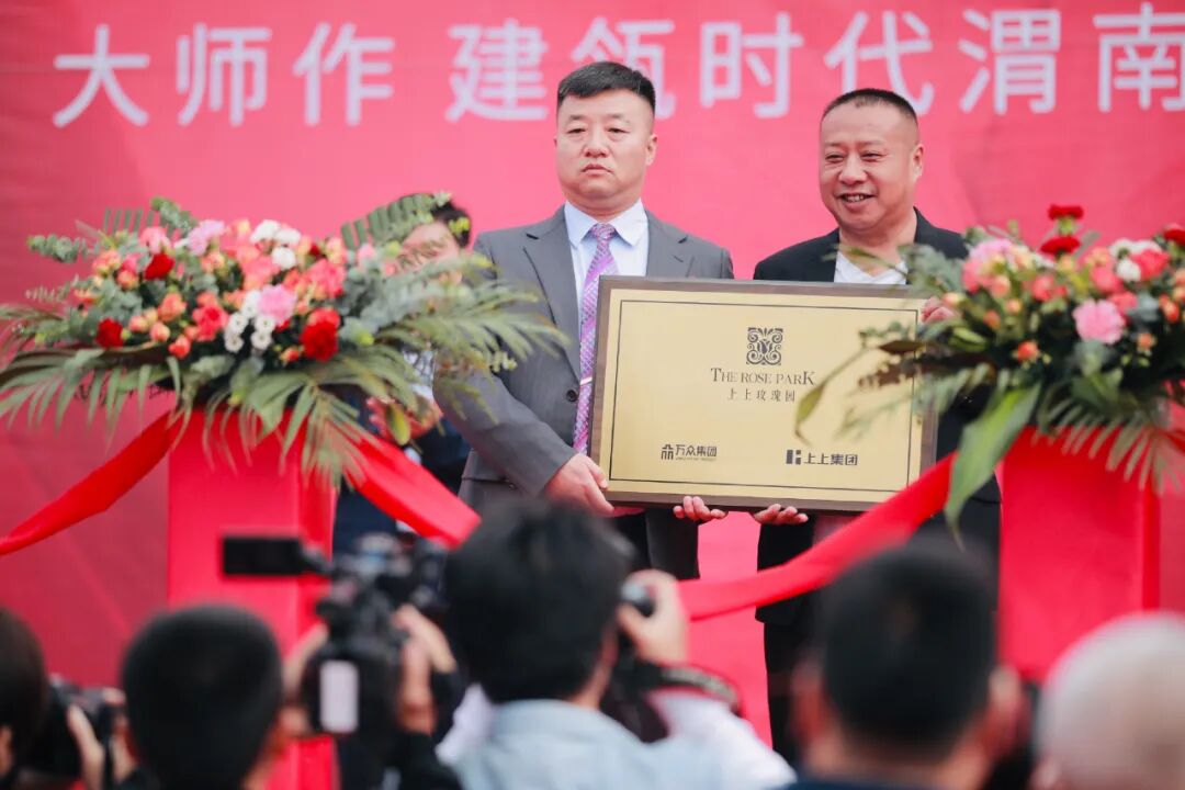 偉大的誕生往往低調(diào)內(nèi)斂,很多時(shí)候是相互成就的并肩行走。作為曾經(jīng)曲江玫瑰園項(xiàng)目誕生的見證者上上集團(tuán)董事長楊海平先生,在上上玫瑰園的開工儀式上迎來了他的重要客人,萬眾集團(tuán)董事長李五亮先生。在眾多媒體的見證下,楊海平先生和李五亮先生完成了代表“玫瑰血統(tǒng)傳承”的交接儀式。偉大并肩,兩人共捧著印有上上玫瑰園標(biāo)識(shí)的金色銘牌。金色玫瑰盛極而綻,玫瑰園高端基因正式從西安曲江生根渭南。
