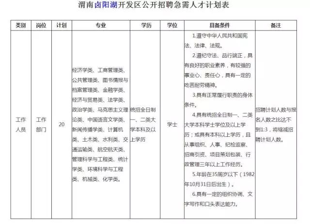 渭南鹵陽湖開發區公開招聘急需人才公告