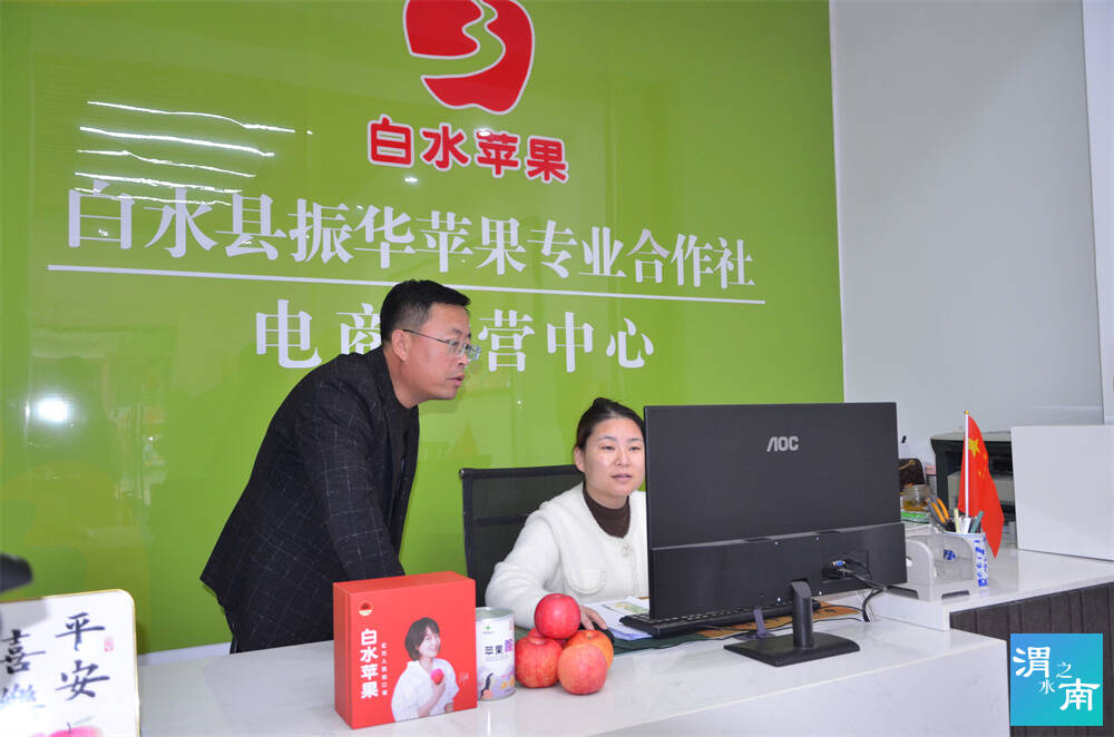 白水縣振華蘋果專業合作社電商運營中心的工作人員在看銷售平臺情況