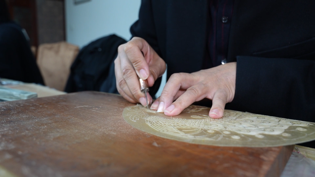 皮影的制作直接影響表演效果,華州皮影以造型優(yōu)美、雕刻細膩、染彩厚重著稱。陜西省非物質(zhì)文化遺產(chǎn)代表性項目華縣皮影制作技藝省級代表性傳承人薛宏權(quán)從14歲開始接觸皮影制作。