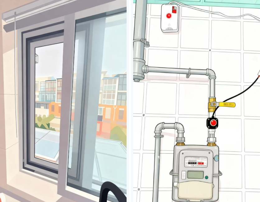 要安裝燃?xì)鈭缶鳎簽榱四陌踩O(shè)置家用燃?xì)獠膳療崴疇t的房間應(yīng)選用燃?xì)狻⒁谎趸紡?fù)合探測器和電磁式緊急切斷閥的安全控制方式。