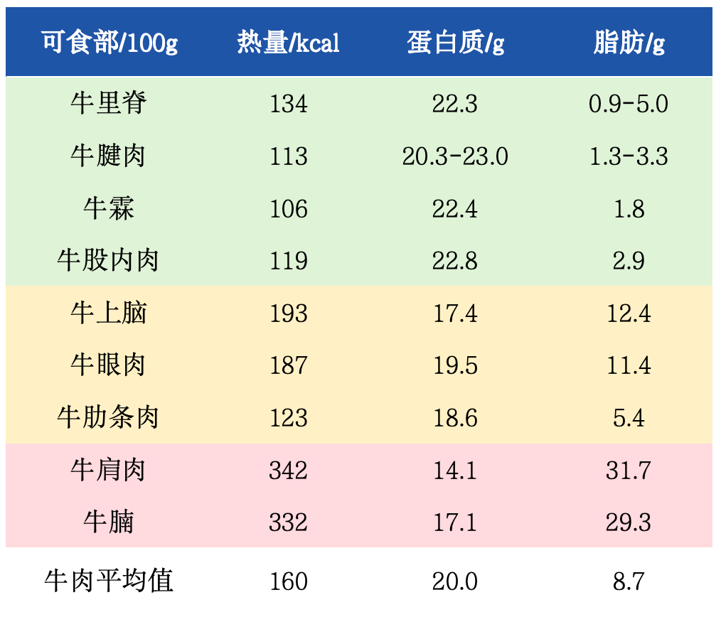 不同部位的脂肪含量差別很大,建議優先選擇牛腱肉、牛里脊等脂肪含量相對較低的瘦肉部位。
