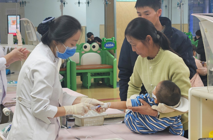 △北京兒童醫院輸液中心,護士為患兒注射。