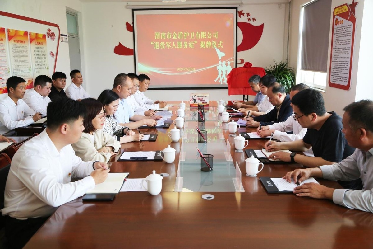5月8日下午,渭南市金盾護衛有限公司“退役軍人服務站”揭牌儀式在公司四樓會議室舉行。