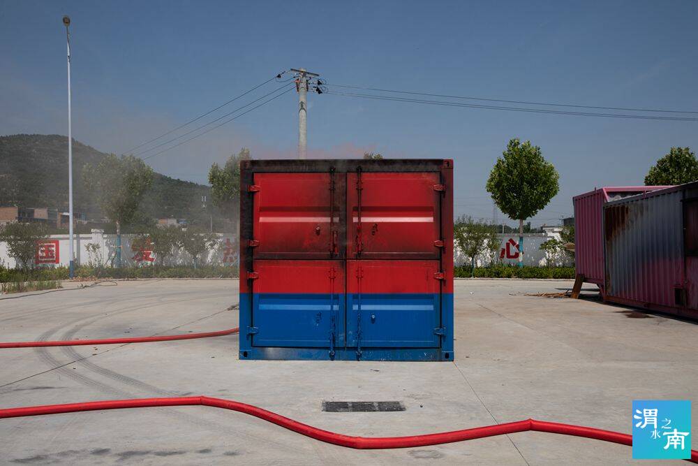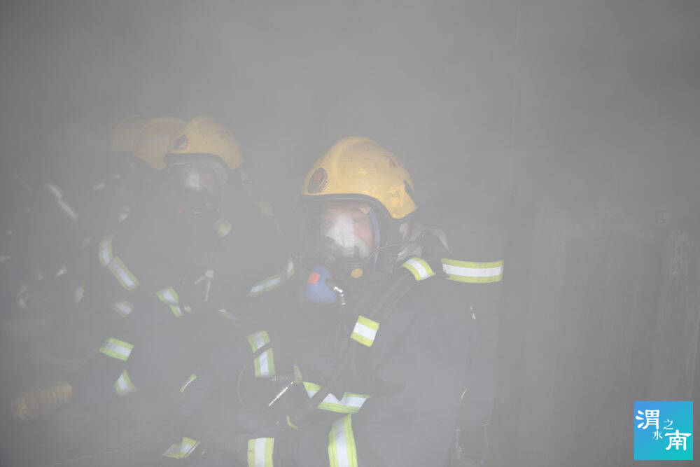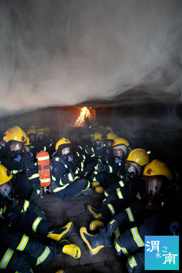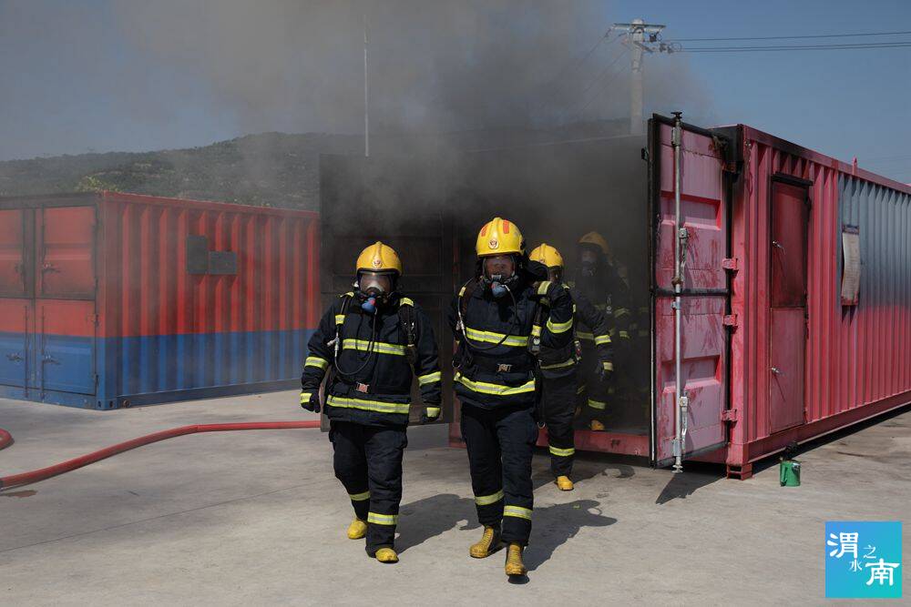 “大家進入‘火場’,不要走動,在自己的位置坐好,認真觀察空氣的流動和煙氣的變化……”只見滾滾濃煙從集裝箱的各個縫隙處竄出,熊熊烈火炙烤著身著滅火防護服的應急救援參訓學員。