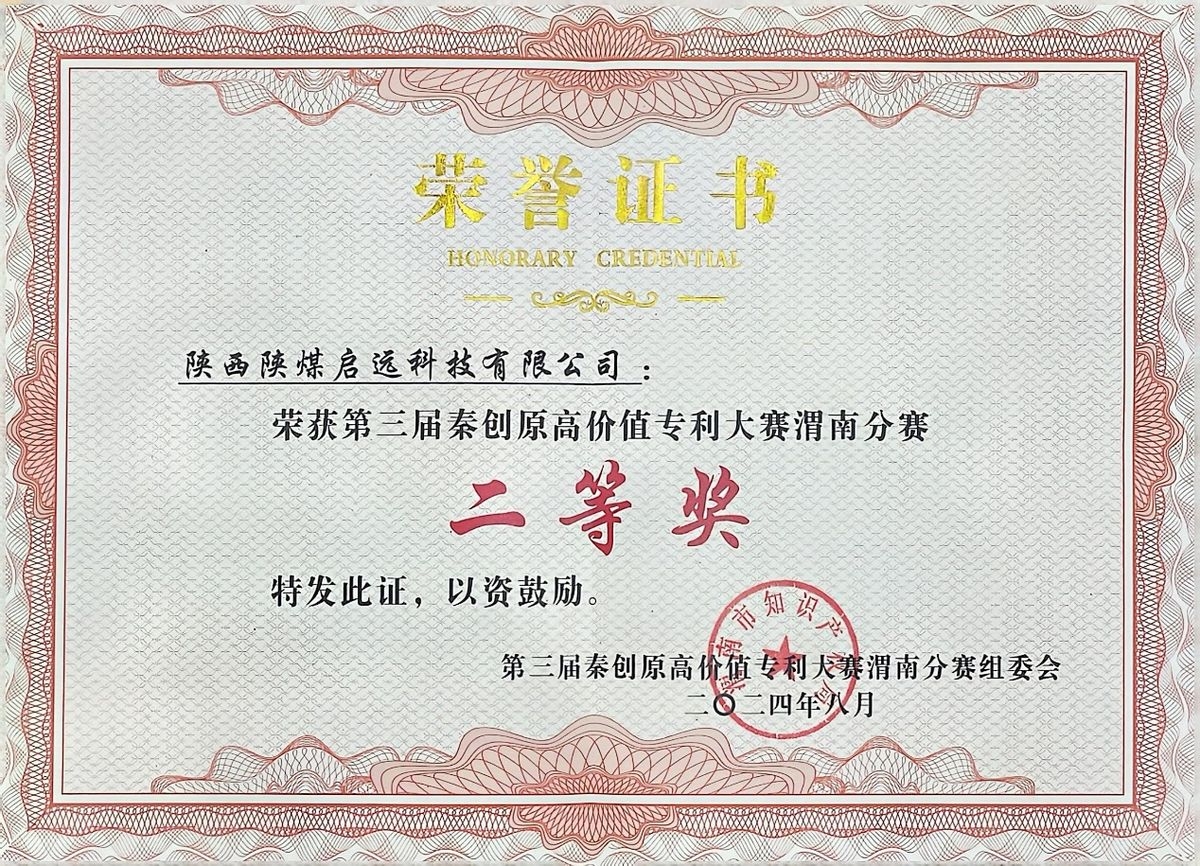 陜煤啟遠科技公司榮獲第三屆秦創原高價值專利大賽渭南分賽二等獎