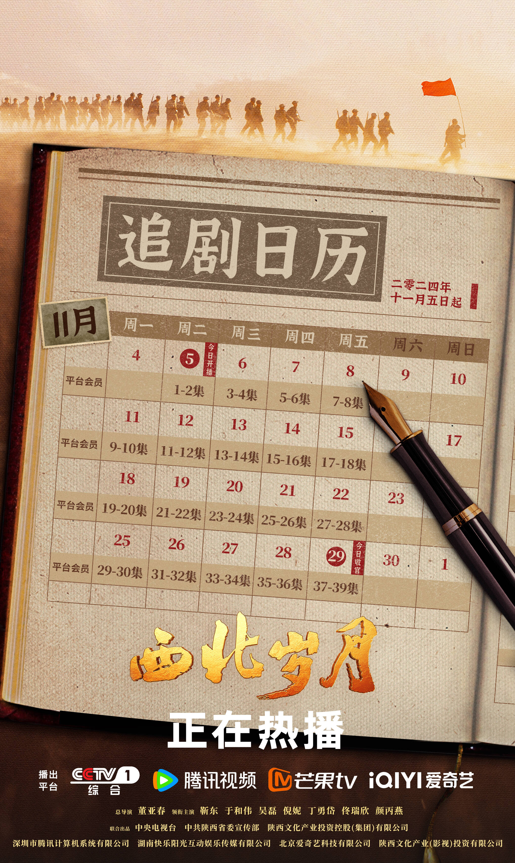 追劇日歷上線!不忘初心,砥礪前行,一起來看革命先輩的艱辛奮斗歷程,重溫熾熱歲月!每周一到周五,CCTV-1 20:00檔播出2集,騰訊視頻、芒果TV、愛奇藝同步播出,《西北歲月》 正在熱播!