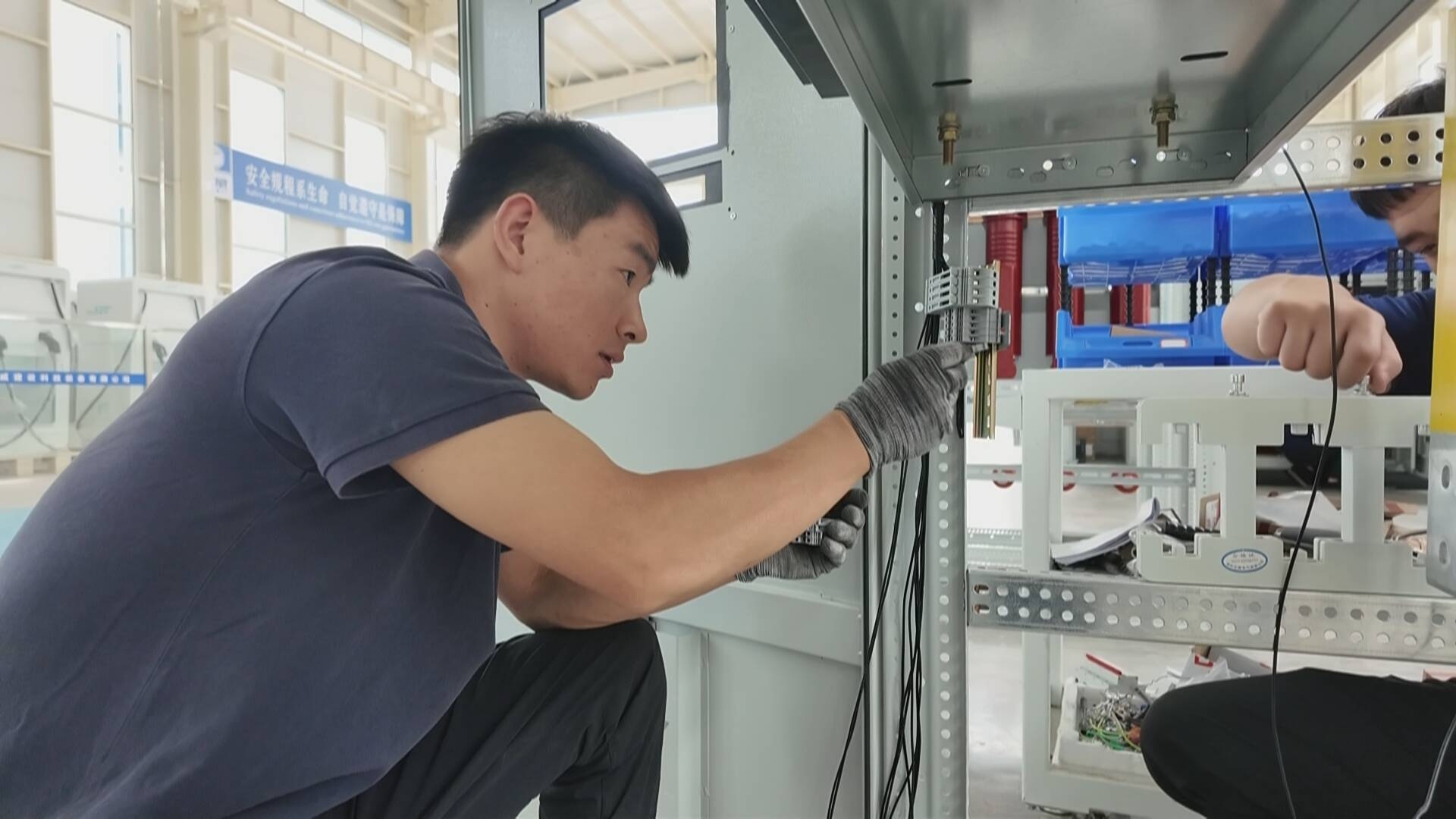 陜西迪威建設科技裝備有限公司總經理 杜威山:這個是我們公司自主研發的直流充電樁控制主板系統,采用了t113芯片和Linux系統,滿足遠程ota升級及智能維護等多種領先行業的技術優勢,目前這一批在產的訂單馬上要交付新疆客戶。