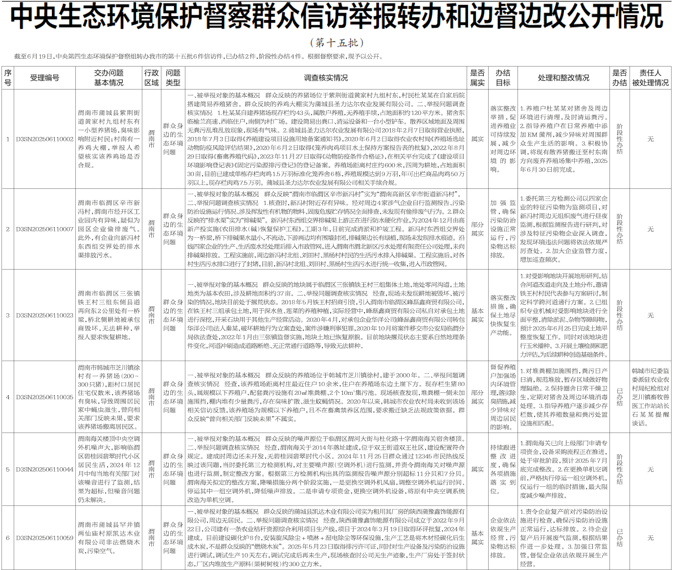 中央生態環境保護督察群眾信訪舉報轉辦和邊督邊改公開情況(第十五批)
