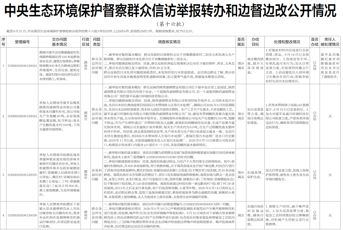 中央生態環境保護督察群眾信訪舉報轉辦和邊督邊改公開情況(第十六批)