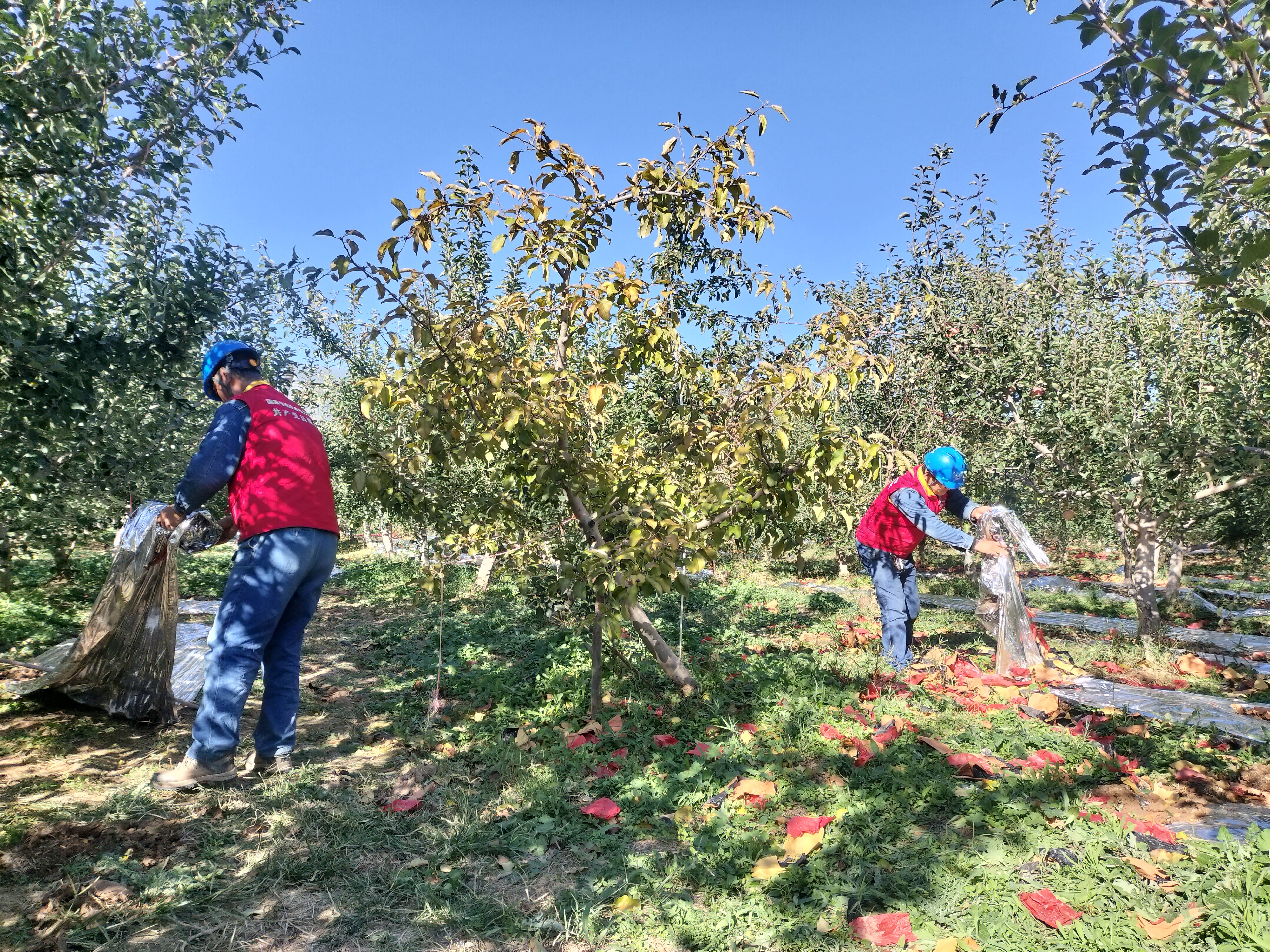 在宣傳過程中,共產黨員服務隊隊員發現部分果園周邊的輸電線路通道內散落著廢棄反光膜,便立即行動,幫助果農撿拾、整理線路周邊的反光膜,并集中堆放、妥善處理。同時,隊員們對果園附近的電桿、拉線等設施進行了隱患排查,及時加固易漂浮物,防止大風天氣下反光膜搭掛線路引發故障。