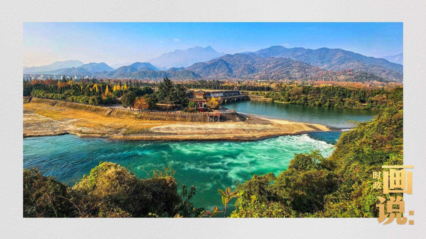 △習(xí)近平和夫人彭麗媛同馬克龍夫婦在都江堰進(jìn)行友好交流