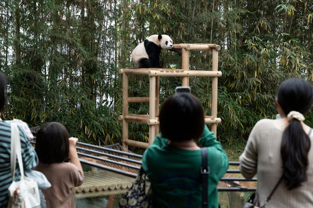 9月30日,游客在韓國龍仁的愛寶樂園觀看大熊貓樂寶。新華社發(全休相攝)