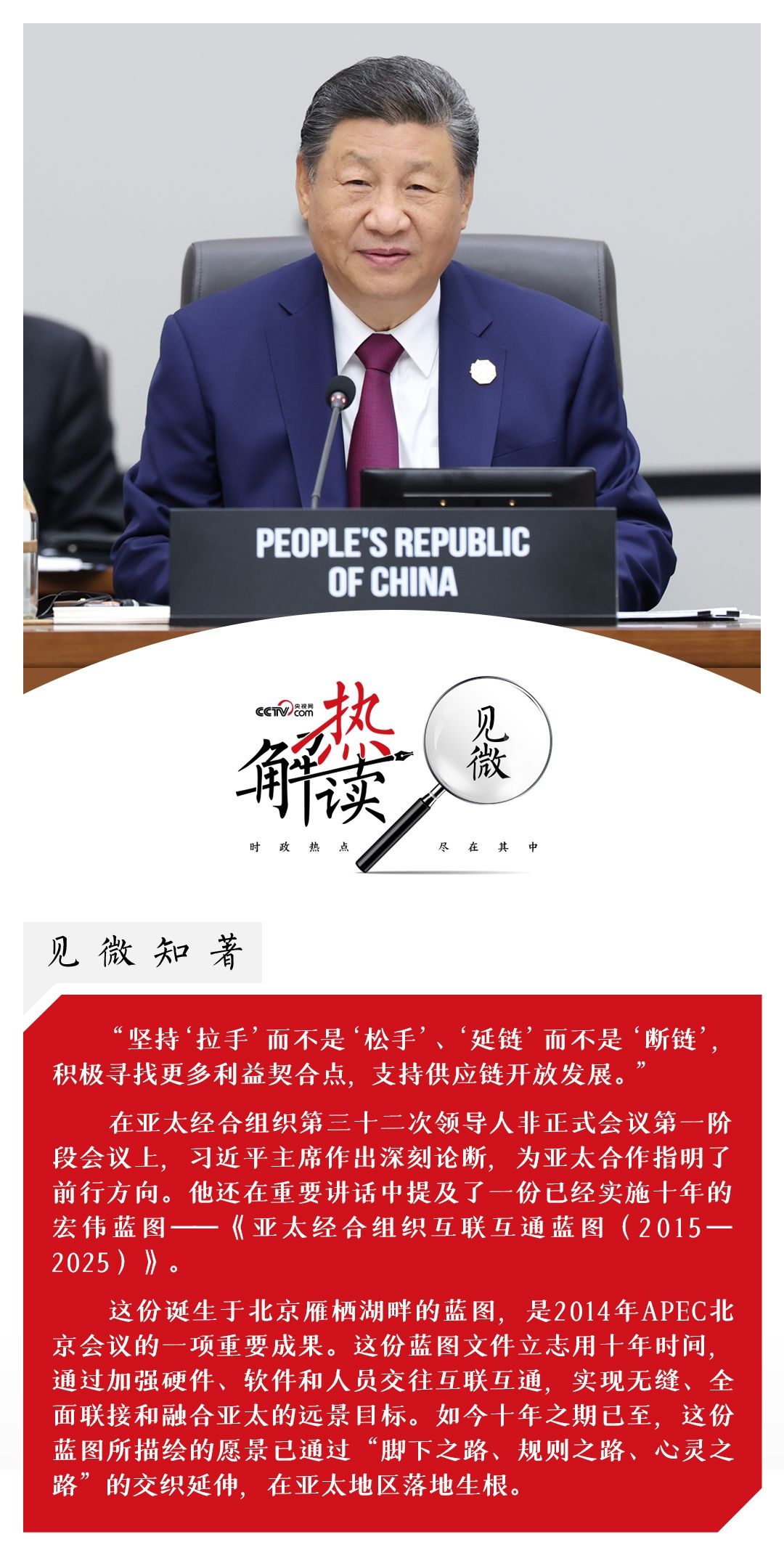 在亞太經(jīng)合組織這個大家庭里,中國始終以務(wù)實(shí)行動推動構(gòu)建互聯(lián)互通、共同發(fā)展的開放格局,讓“開放包容”成為亞太合作的主旋律。