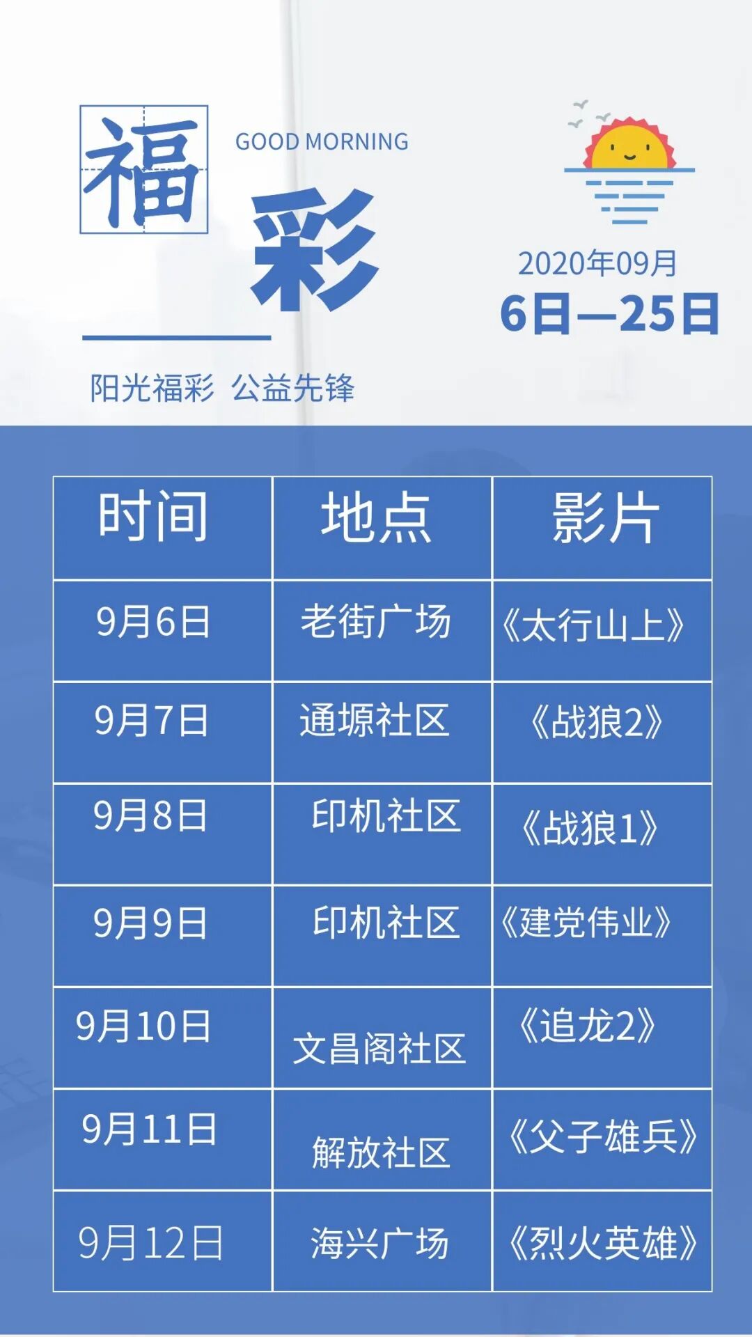 福彩公益電影將從9月6日至9月25日,每天下午19:00在城區不同的社區或廣場放映,如遇天氣或其他特殊原因不能如期放映,將通過“渭水之南”APP、“渭南福彩”、“福彩零距離”微信公眾號等官方平臺提前告知。請掃描下方二維碼添加關注,視覺盛宴,敬請期待!