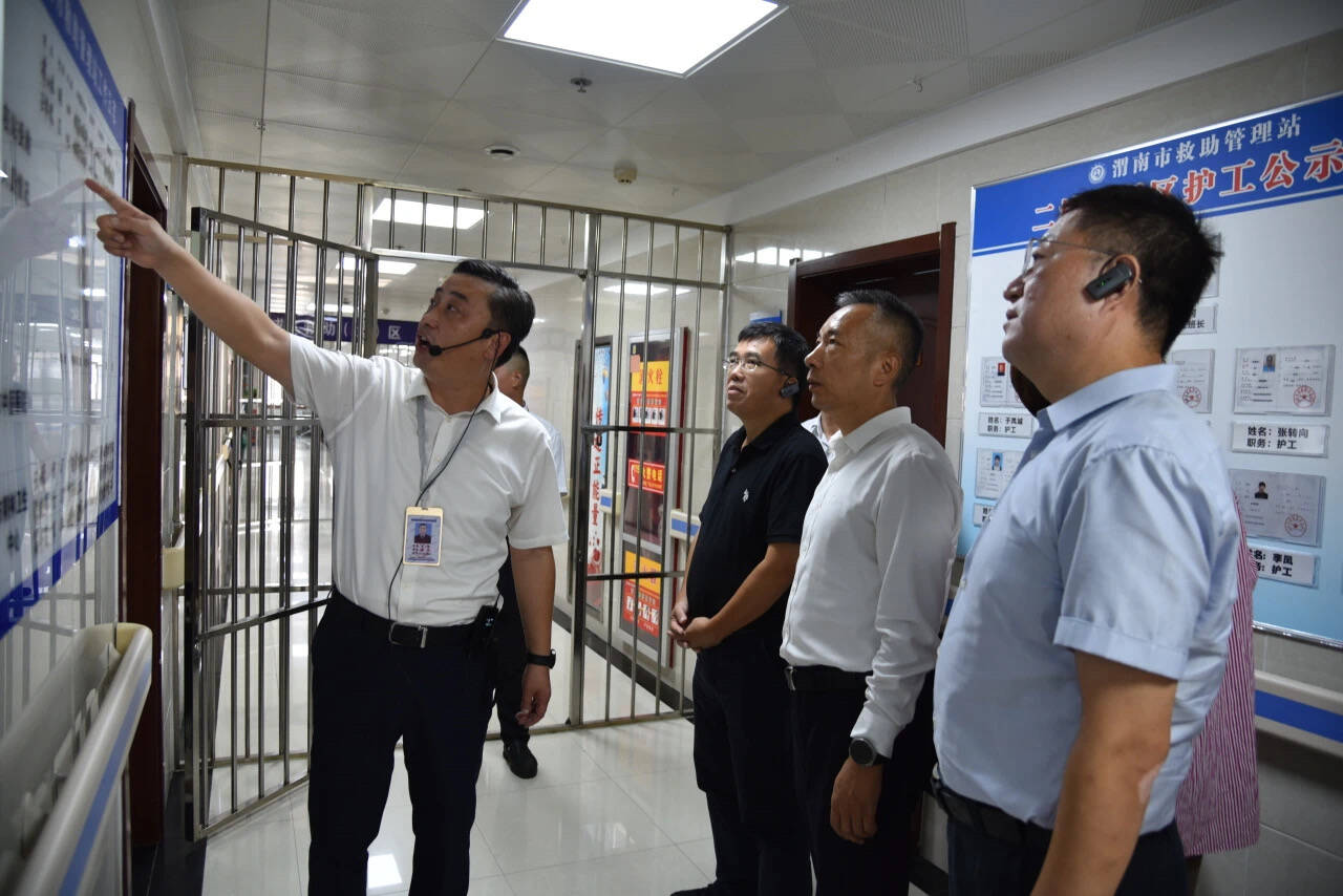 調研中,來自內蒙古、湖北、四川、新疆等地的救助管理機構負責人赴渭南市救助管理站,參觀求助接待區、成人照料服務區、未成年人救助保護區、辦公區等。座談中,各救助管理機構負責人就試點工作開展情況進行詳細匯報,大家互相交流、分享經驗,探討問題、共謀發展。