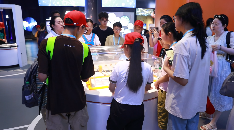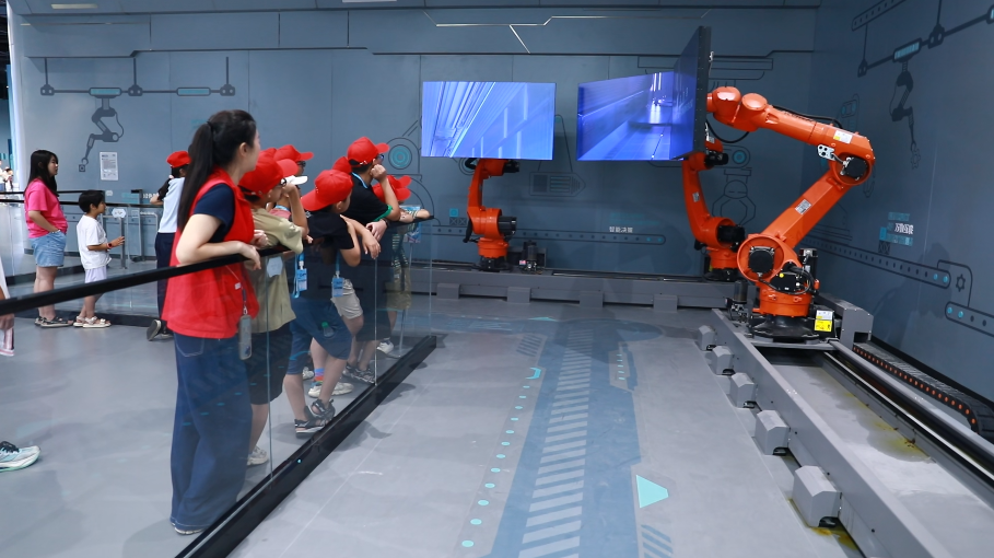 在最后一站的西安科技館,更是開啟了孩子們對未知世界探索的大門。在“科學樂園”展區,志愿者帶領孩子們親身體驗了力學、光學、聲學等互動裝置。孩子們紛紛伸出小手,好奇地觸摸、體驗,在驚嘆聲中感受科學的奇妙。特別是在“硬核力量”展區的大國重器與前沿科技成果令孩子們驚嘆不已,志愿者講述的科技成就故事,激發了孩子們的民族自豪感。在“逐夢空天”展區的航空航天模型與模擬設備,點燃了孩子們的飛天夢想;“科藝環廊”實現了科學與藝術的跨界交融;在“科普研學教室”里,趣味實驗讓孩子們動手探索科學原理。千奇百怪的科學現象和海量的科學知識徹底讓孩子們在科學的海洋里遨游,也激發起他們的探索欲和求知欲,讓此次活動變得格外有意義。
