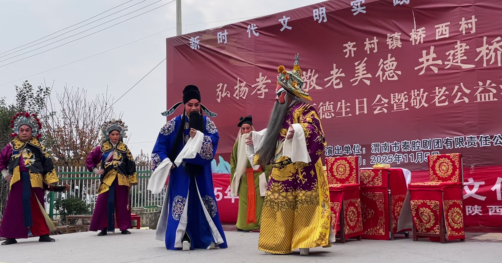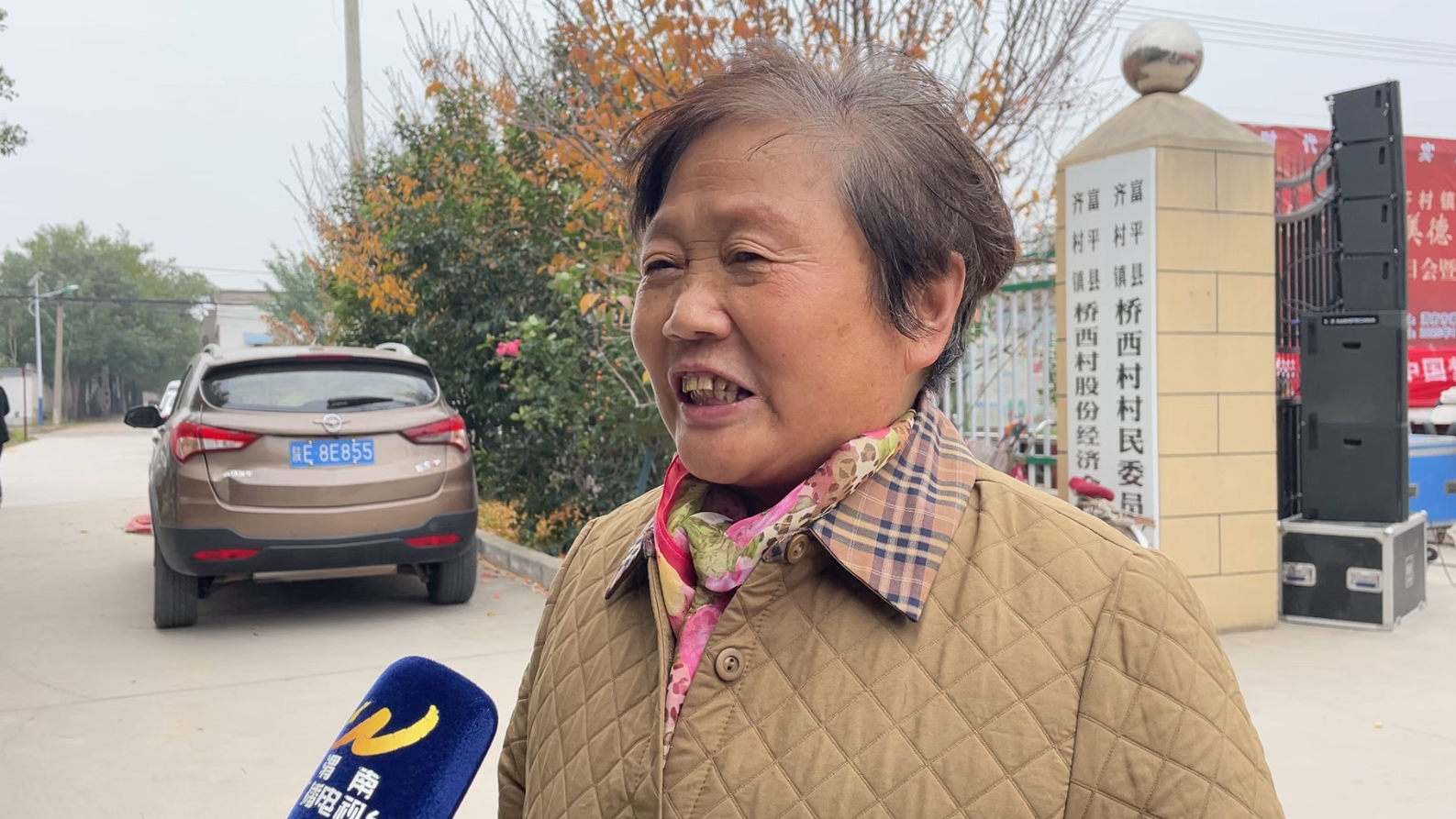 富平縣橋西村村民樊秋娥在采訪中說:在我們橋西(村)給我們搞這個服務,我們老年人很開心,給我們演秦腔戲,我也愛聽秦腔戲,秦腔戲一唱,感覺生活之中啥煩惱都沒有了,很開心。