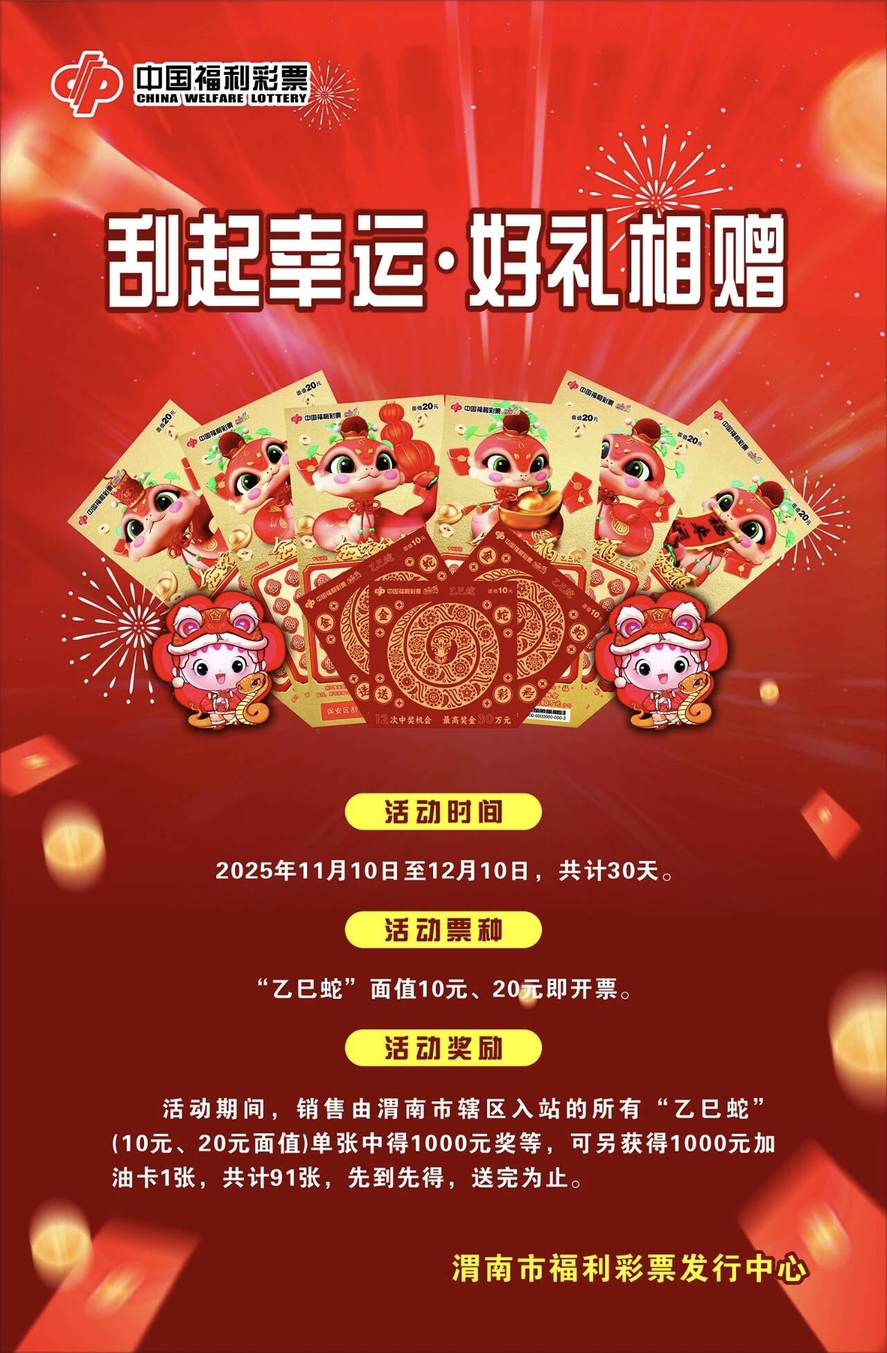 幸運加倍!渭南福彩“乙巳蛇”刮刮樂中1000元再送千元油卡