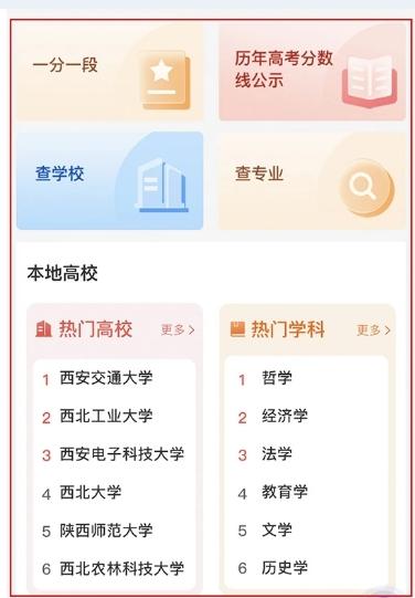 考生和家長對招生政策、高校專業不太了解?“秦務員”APP還設置了“一分一段”“歷年高考分數線公示”“查學校”“查專業”等功能,幫考生集合了部分優質信息渠道,讓大家能夠快速找到適合的大學和學科。