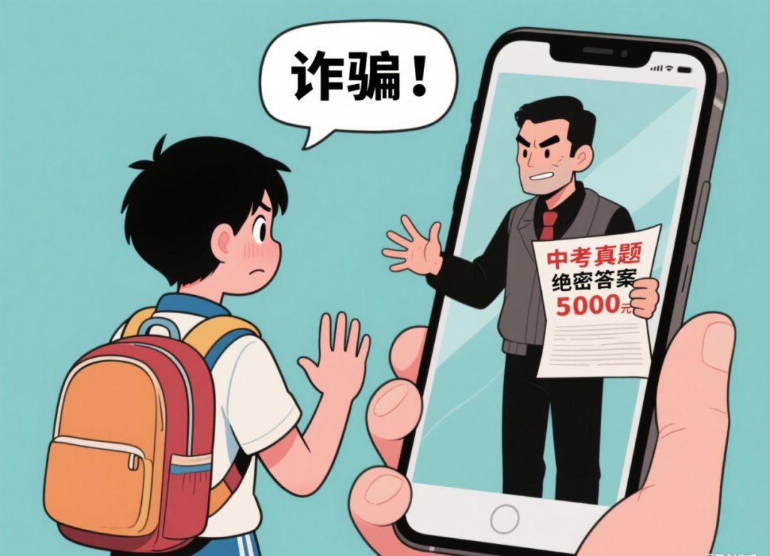 ?? 騙子會在網絡上發布 "中考真題"" 絕密答案 " 等虛假信息,聲稱可以幫助考生提高成績。
