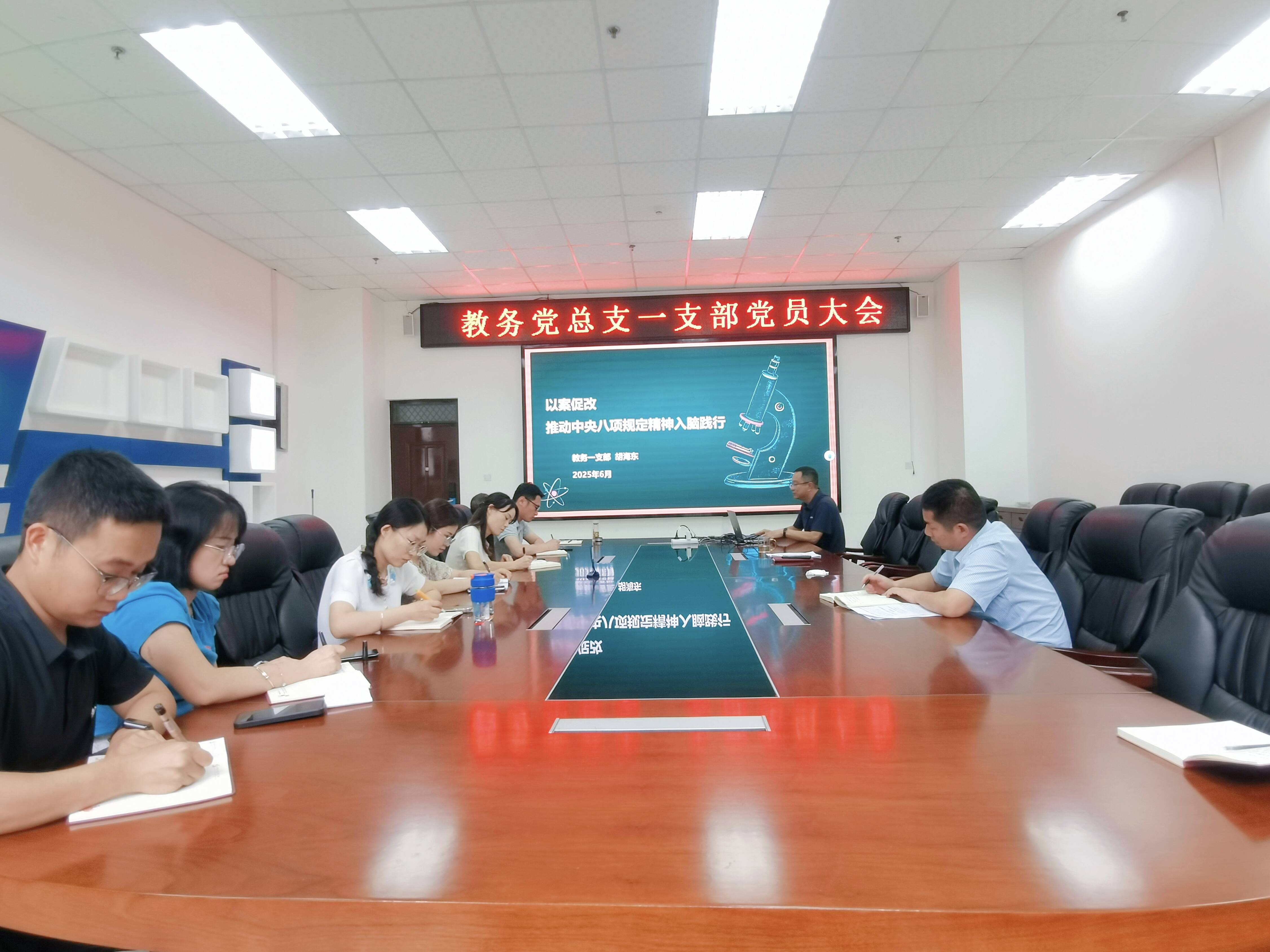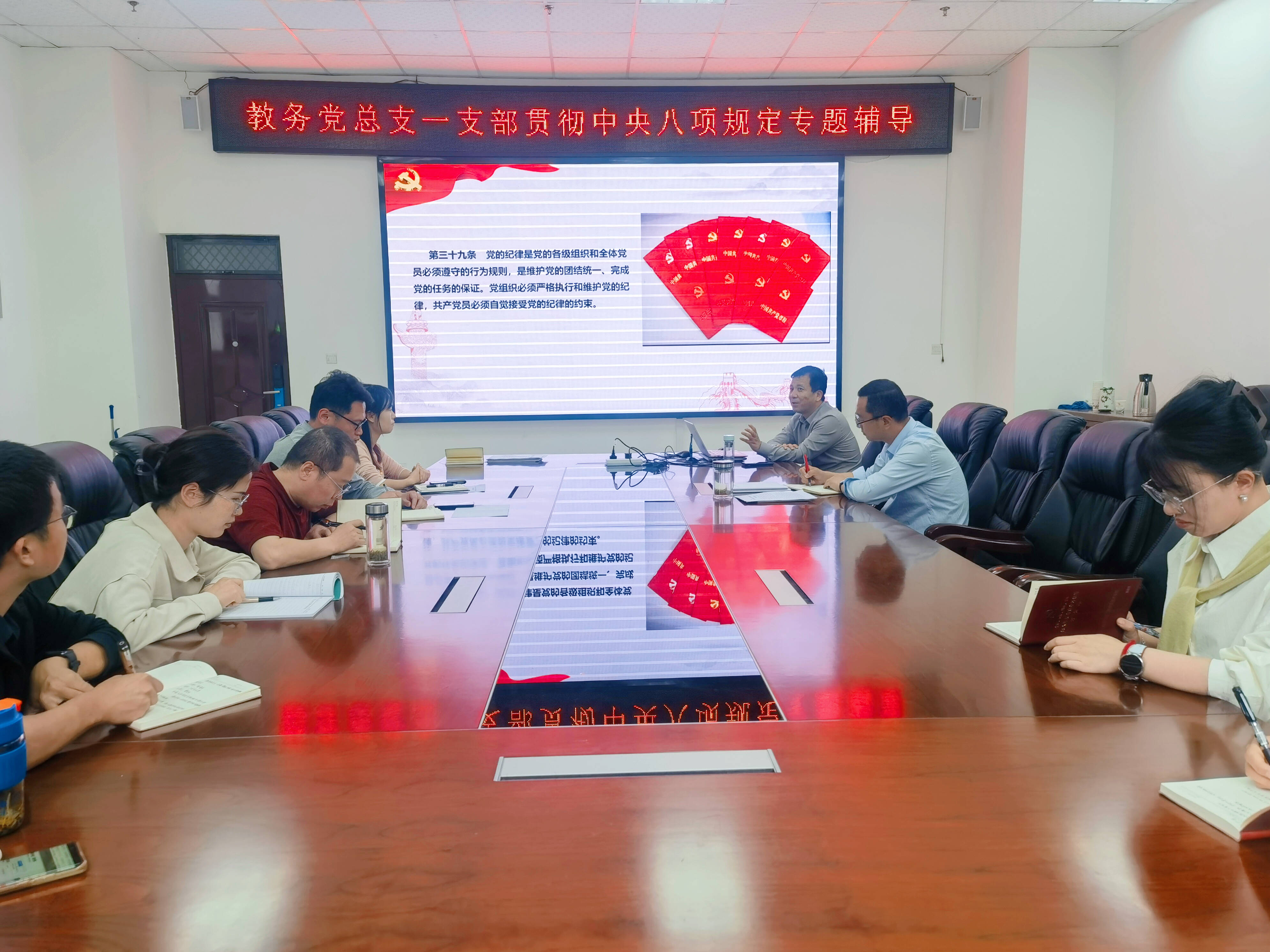 積極動員部署,筑牢思想根基。3月19日下午,教務一支部召開深入貫徹中央八項規定精神學習教育動員部署會,支部書記胡海東帶領學習學校實施方案,并安排部署學習教育系列活動。支部利用“三會一課”深入學習中央八項規定精神及其實施細則,以及在全黨開展深入貫徹中央八項規定精神學習教育新聞稿、黨的十八大以來深入貫徹中央八項規定精神的成效和經驗等重要內容10余次。通過集體學習研討,推動中央八項規定精神入腦入心,夯實紀律意識思想根基。