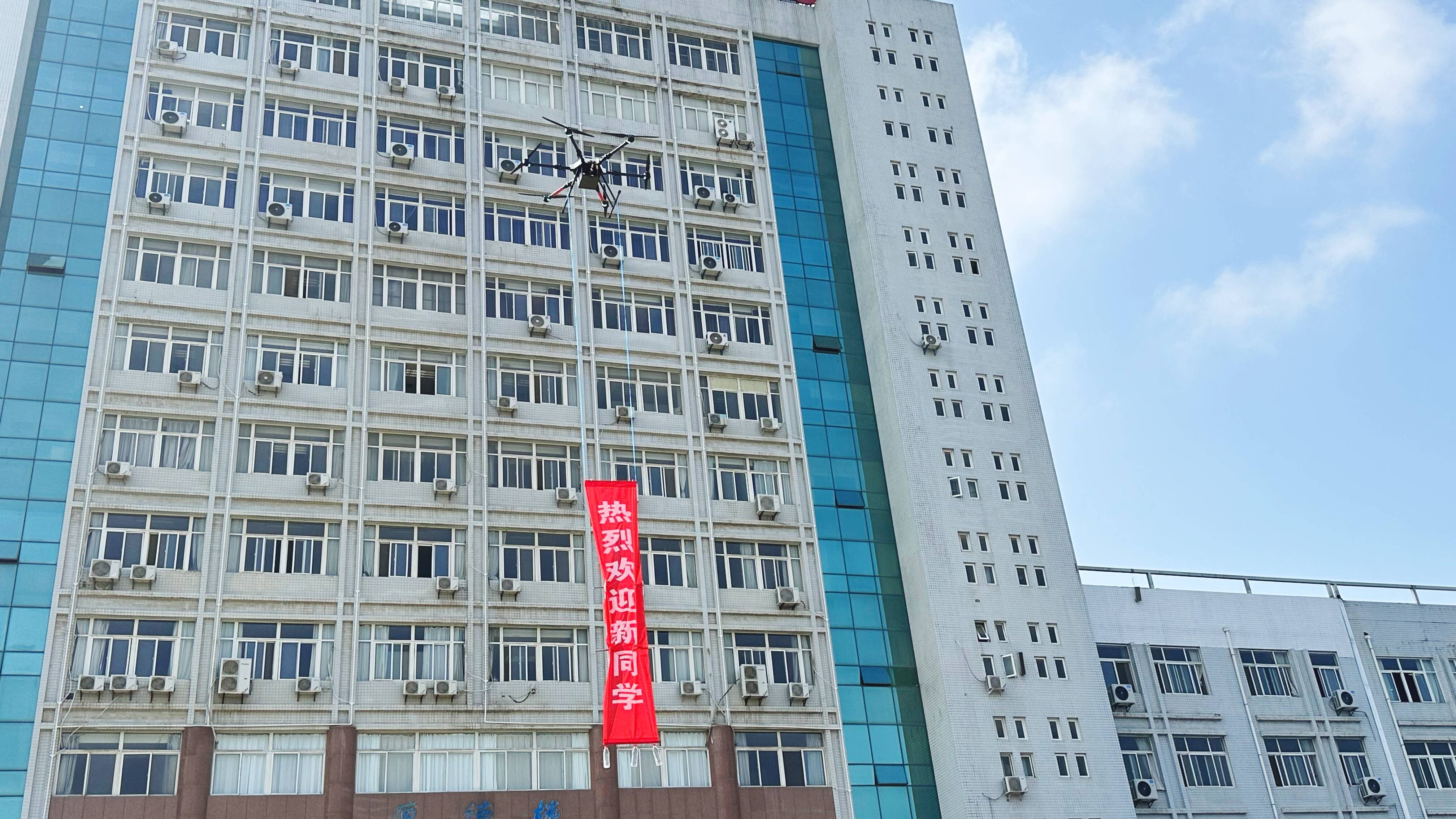 ?(通訊員:紀昌江)9月13日,渭南師范學院迎來了2025級新生入學報到,繼續教育學院別出心裁,利用無人機在學校主樓厚德樓上空懸掛“歡迎新同學”條幅,以創新科技的方式向新生表達期待與歡迎。