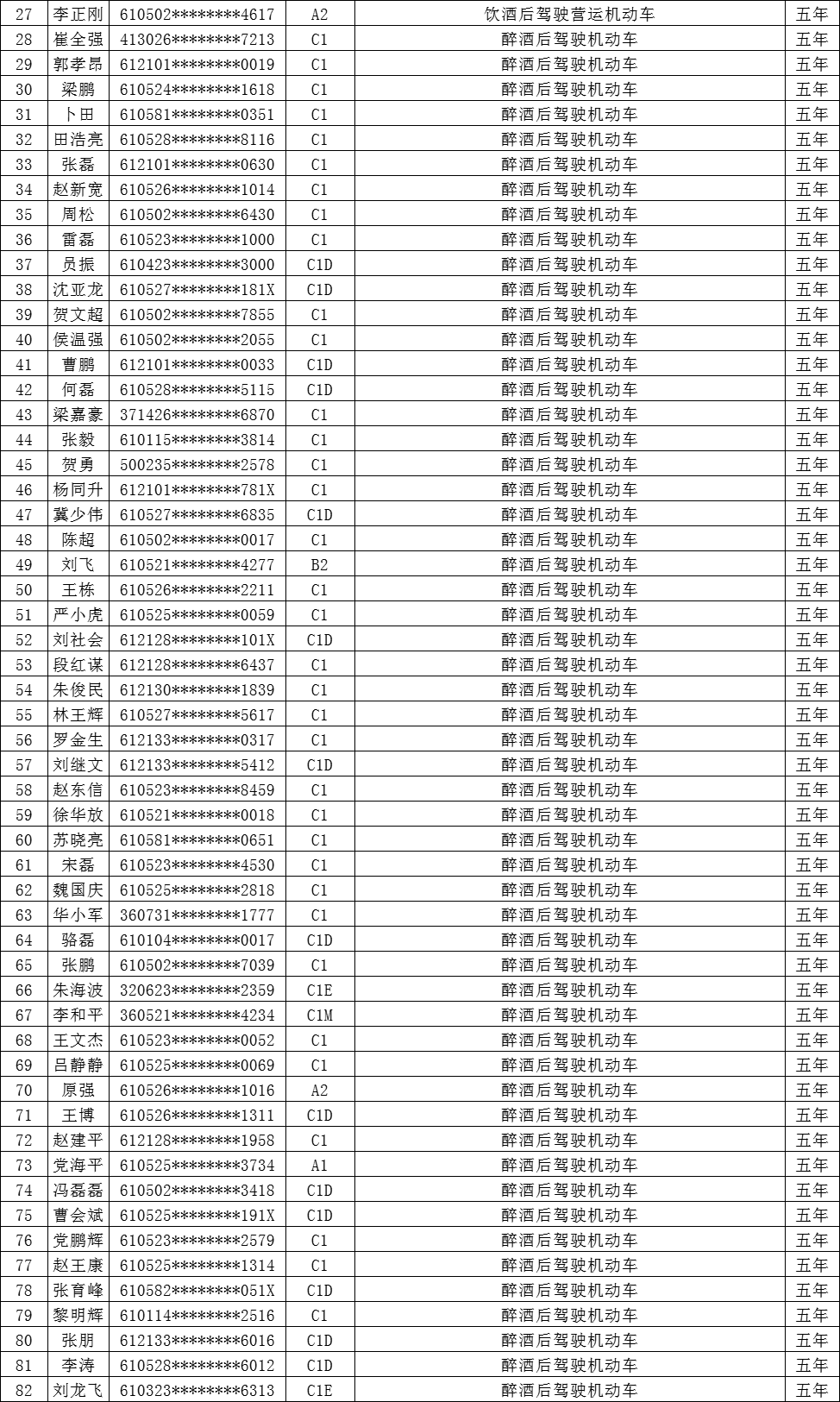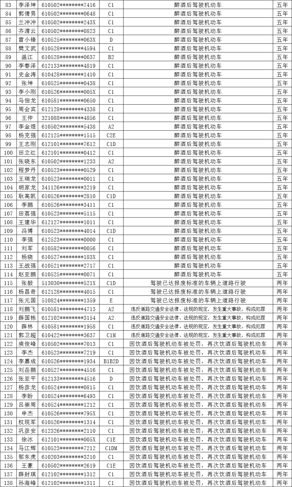 五大曝光|節(jié)前必看渭南4人終身禁駕168人駕駛證被吊銷(xiāo)