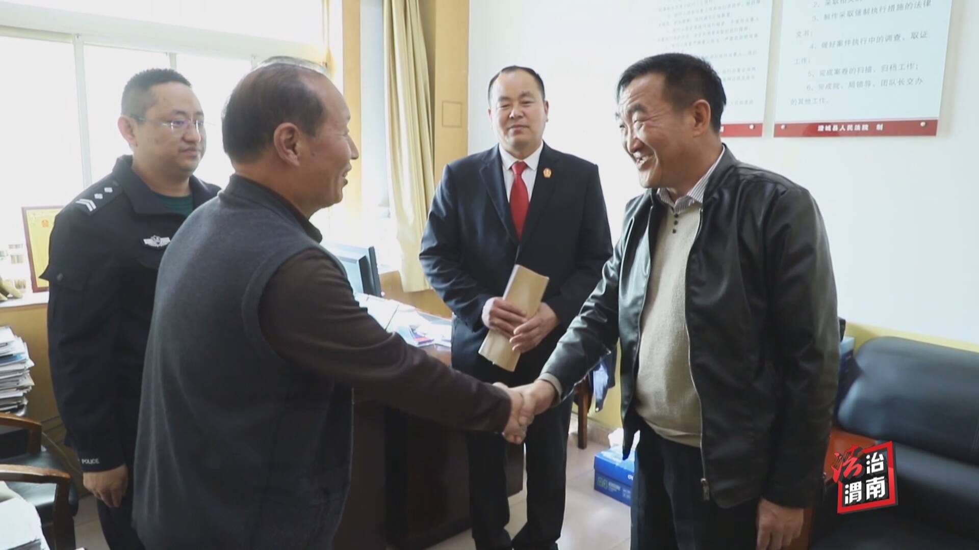案件申請執行人 張某父親:娃這案子執行的時間比較長難度很大,咱法官這些干警很辛苦跑前跑后,各個單位各個部門聯系,給我們雙方畫上圓滿的句號,我們很高興,很辛苦謝謝大家。