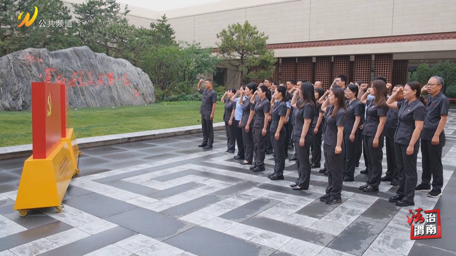在紀念館中央廣場,全體黨員干警整齊列隊,面向鮮紅黨旗重溫入黨誓詞,法官干警在鏗鏘有力的宣誓聲中堅定初心使命和司法為民宗旨。