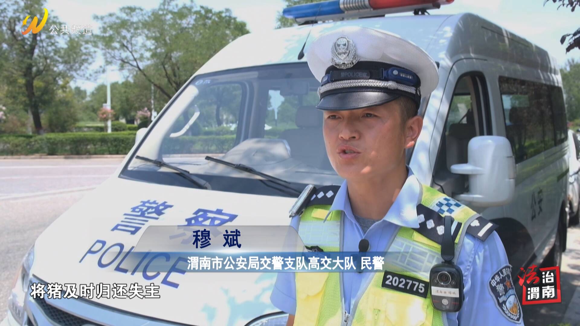 渭南市公安局交警支隊高交大隊 民警 穆斌:隨后我們將調取沿途監控,及時聯系失主,將豬及時歸還失主。