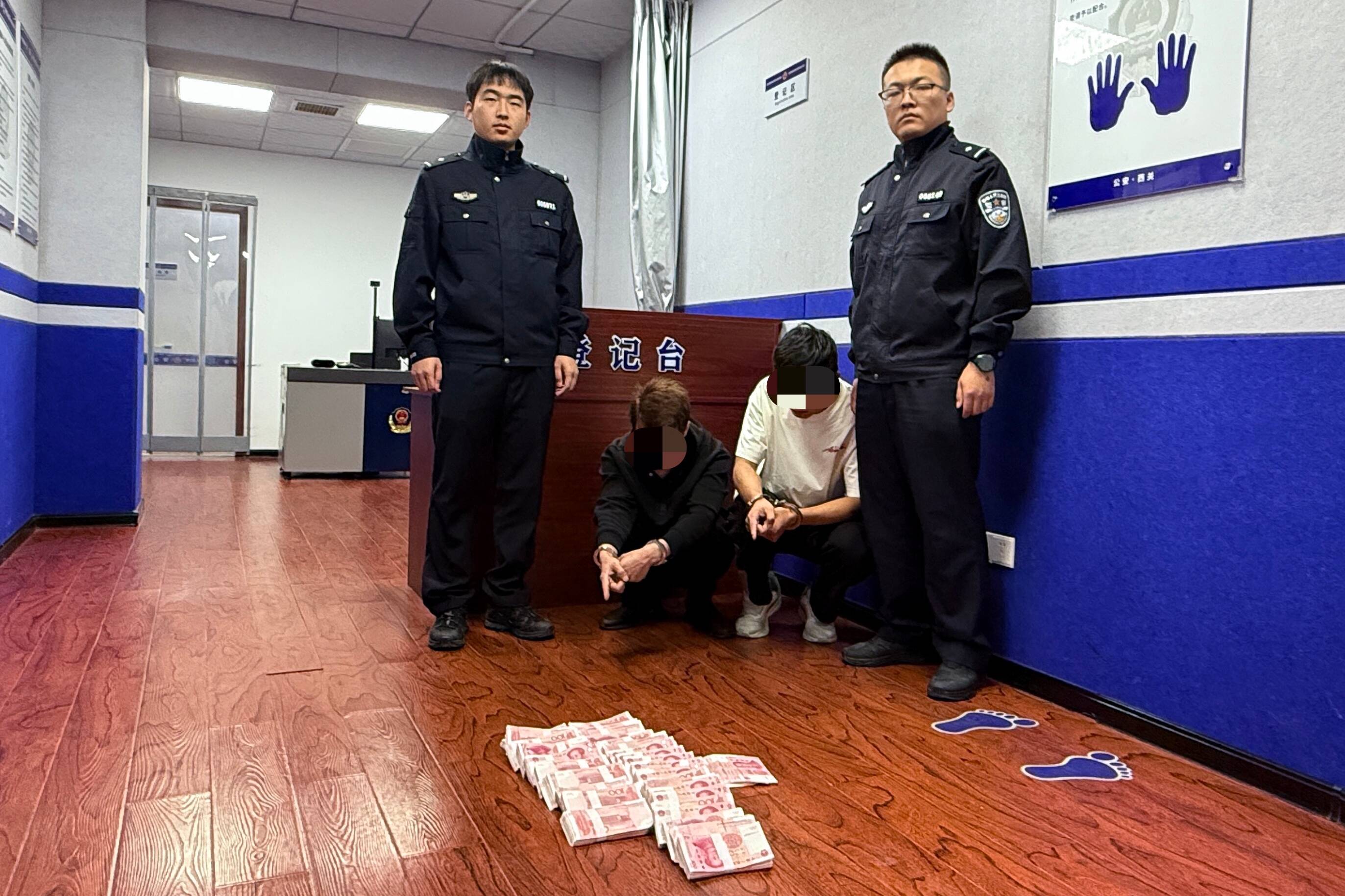 勸阻過程中,民警敏銳捕捉到關(guān)鍵線索,包某已與詐騙分子已約定好取款地點(diǎn),值班所領(lǐng)導(dǎo)當(dāng)即帶隊(duì)前往取款地點(diǎn)周密布控。經(jīng)循線追蹤,民警當(dāng)場(chǎng)抓獲前來取現(xiàn)的犯罪嫌疑人2名,并查獲嫌疑人隨身攜帶的涉案現(xiàn)金30.3萬元,這些資金正是其在寶雞市、咸陽市、大荔縣等地輾轉(zhuǎn)取現(xiàn)的涉案資金。