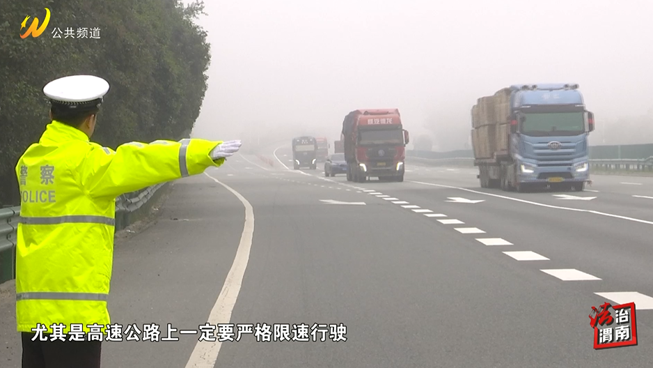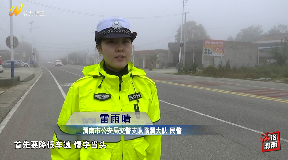 渭南市公安局交警支隊臨渭大隊民警雷雨晴:霧天環境下駕車,應勤按喇叭,牢記“雙車道走內側,三條車道走中間”原則,以車道線作為參照物低速行駛,切勿隨意變道超車。