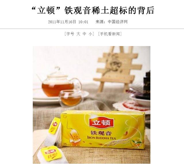 說到茶葉中的稀土,相信很多人對當年立頓茶稀土超標事件記憶猶新: