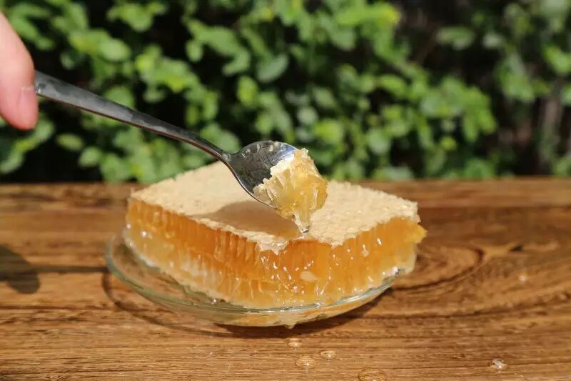 吃巢蜜,可以選用原始的吃法,就像《舌尖上的中國(guó)2》里的藏族男孩那樣,將蜂巢和蜂蜜一起直接咀嚼,直到?jīng)]味道就可以把殘?jiān)鲁鋈チ耍欠湎灒滔峦瑯右矡o害。