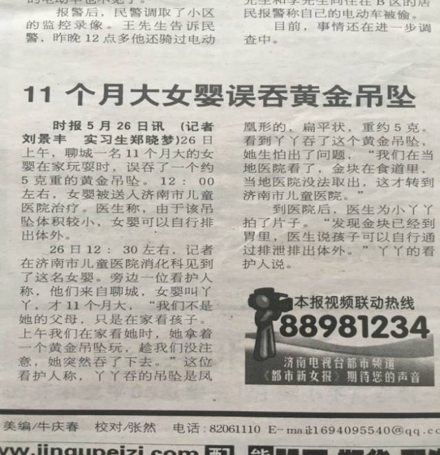 △媒體刊登的幼兒貴金屬飾品傷害事件