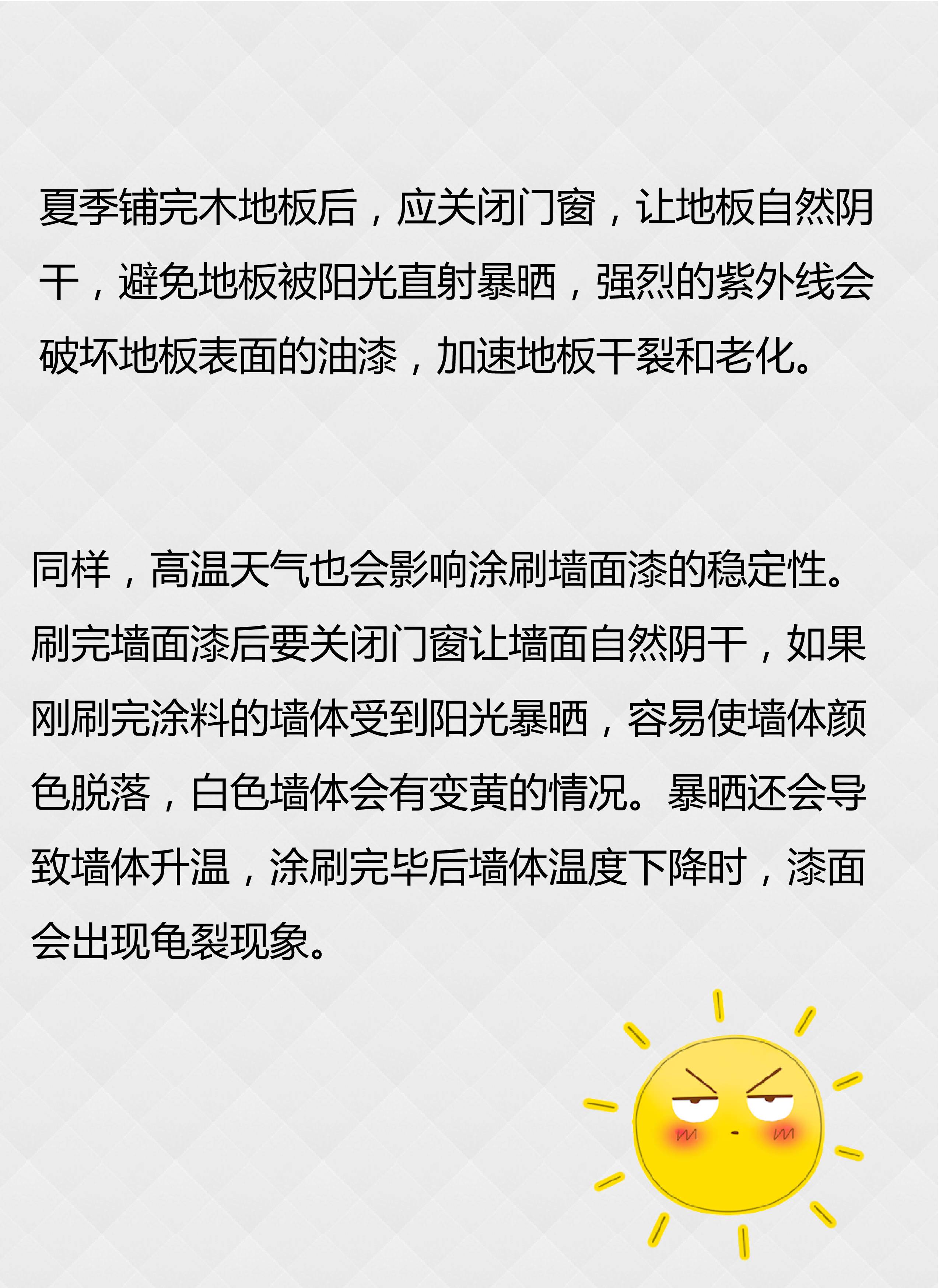 防曬關閉門窗讓地板墻面自然陰干