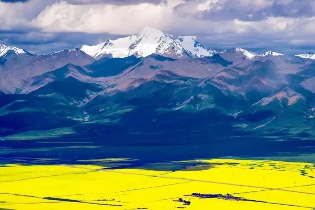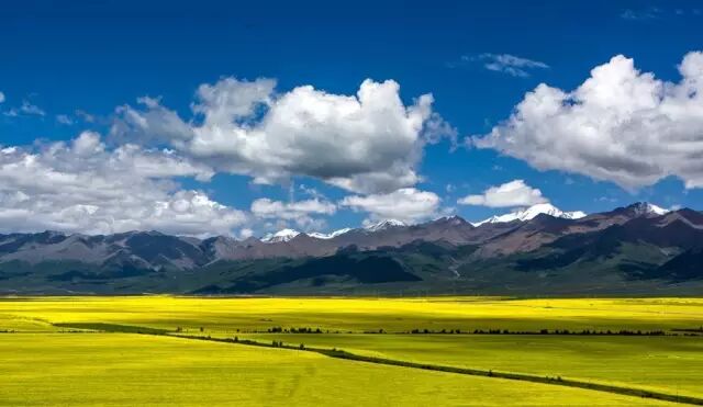 油菜花并不稀奇,哪里都有,但門源的油菜花氣勢尤為壯觀。濃艷的黃花,橫越門源盆地足有百公里,在高原深藍的天空下,與遠山近水,村落人家相輝映,近看遠觀皆為美景。