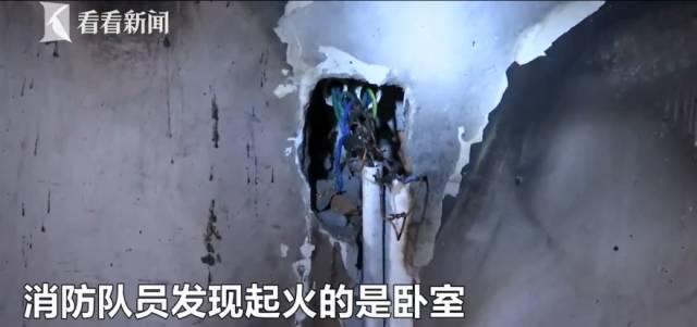 消防隊員接警趕到后破門而入,發現起火的是一間臥室,床頭柜一處電源為起火點,引燃了床、空調等物品,臥室內一片狼藉。