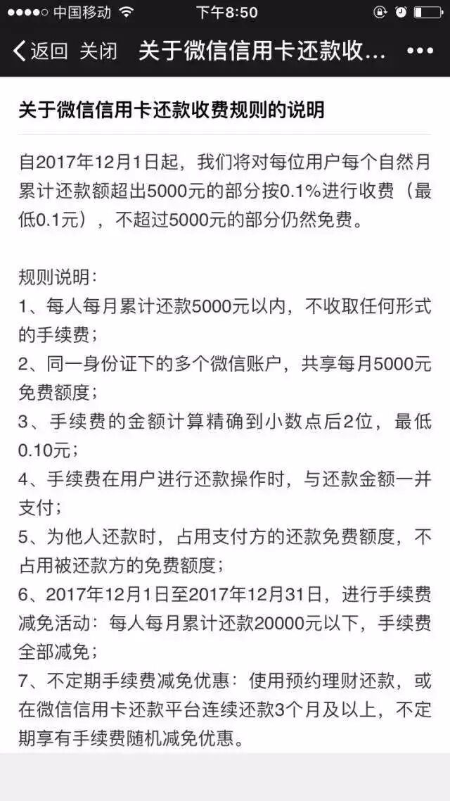 緊急提醒!下月起微信還信用卡要收費(fèi)了!
