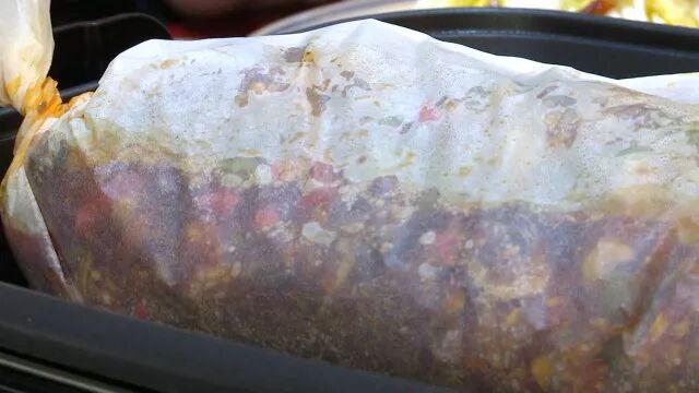 紙包魚用到的主要的方式還是以蒸為主。各種調料的味道混合起來經過蒸之后,再加烘烤,這樣的方法并不多見。蒸可以讓鹽分在魚肉中更加入味。接下來把蒸好的魚放在專業的烤紙上,均勻得灑上各種調料,這味道之所以鮮香,正是這調料發揮了作用。