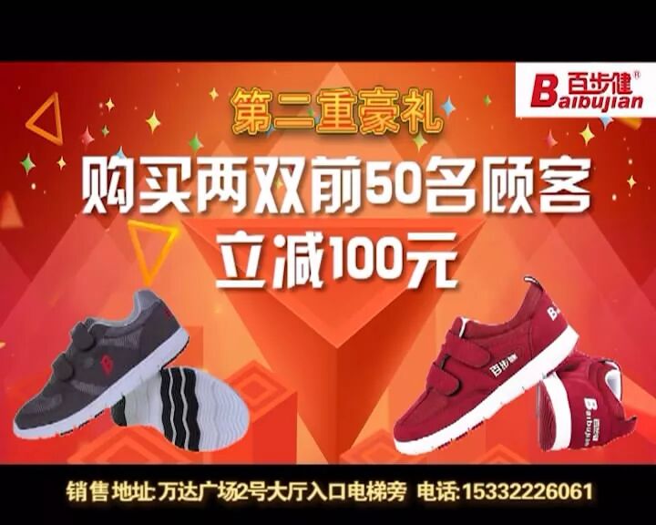 凡購買兩雙百步健老人鞋的前50名顧客立減100元;