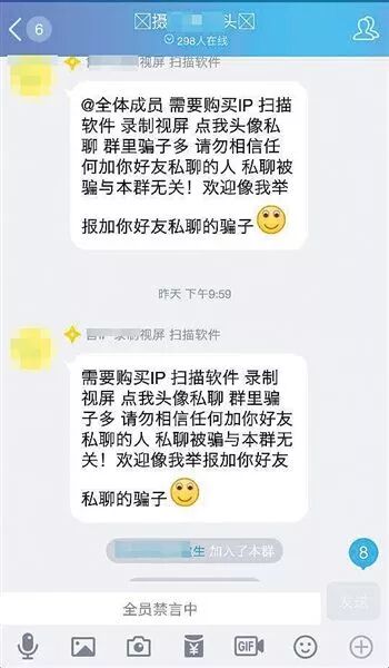 記者加入其中一個“攝像頭破解”QQ群,群介紹顯示創建于今年11月11日,有成員627人。群聊處在全員禁言的狀態,只有群主和管理員時不時發出一條“@全體成員?需要購買IP?掃描軟件?錄制視屏點我頭像私聊”的信息。