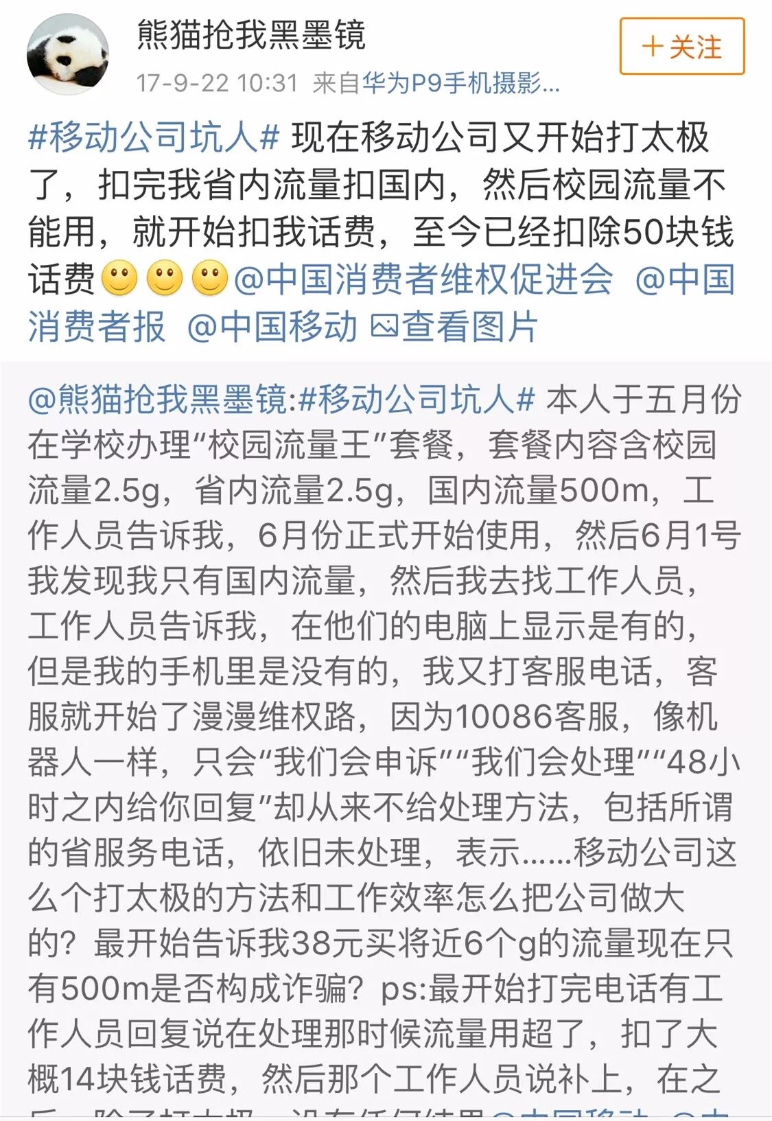 2017年11月24日,卜女士向工信部官網(wǎng)投訴,11月28日再次致電工信部反映情況。當(dāng)天下午,中國(guó)移動(dòng)致電卜女士表示可退回多扣費(fèi)用100元,并補(bǔ)償卜女士一張100元充值卡。