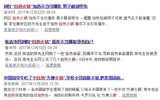 小編特意在網上搜索了一下關于自熱火鍋的新聞,心里突然有一種隱隱的擔憂……
