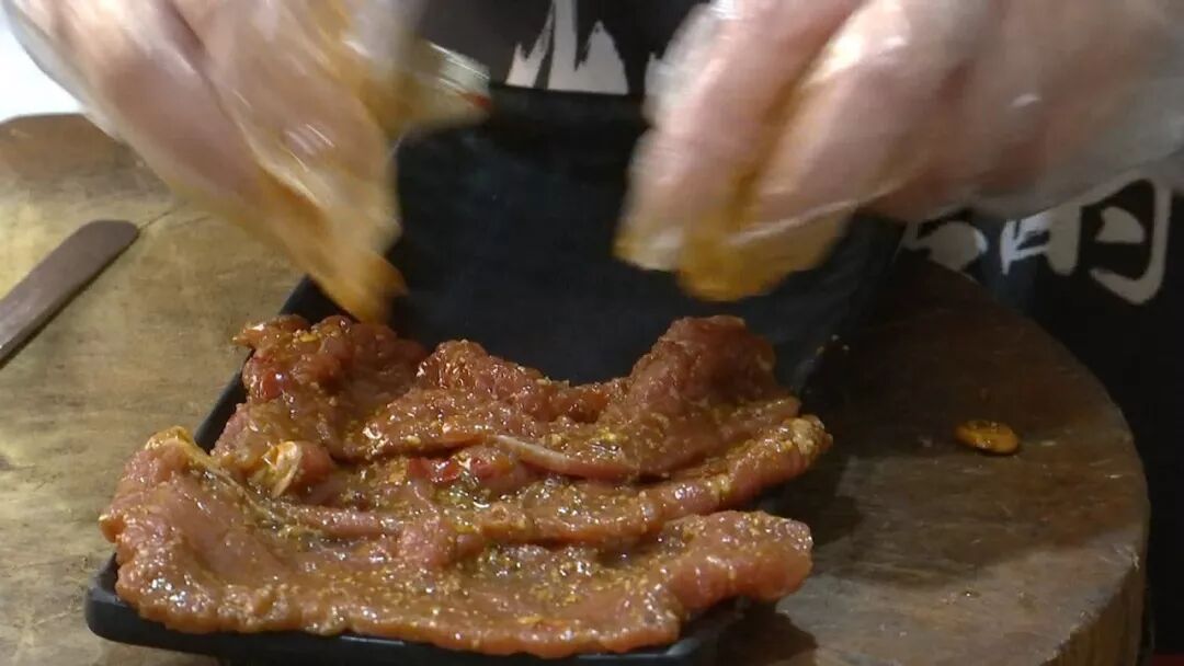蒼山洱海石板燒的特色不僅是石上燒烤,他們的肉類以及菜品更是講究,店中每天都會有專人負責采購最新鮮的食材,這里的廚師告訴我們,他們的肉從來不會放在冰箱里,都是剛到店里就進行腌制,因為這樣烤出來的肉,口感更好。