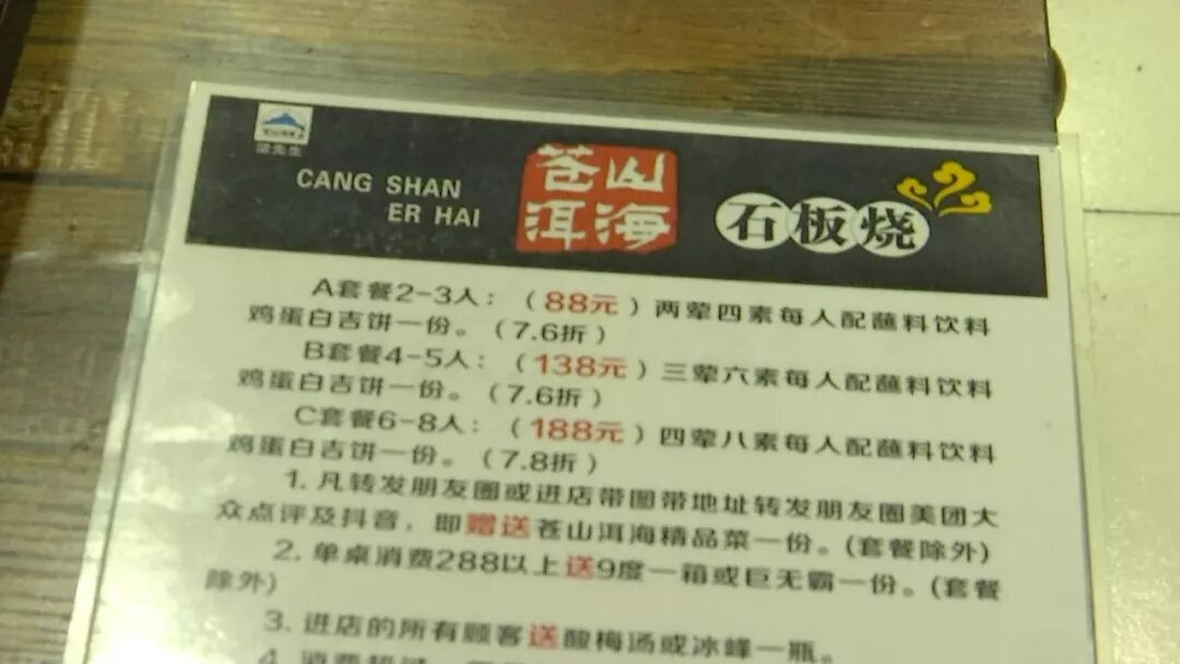 我們了解到,蒼山洱海石板燒目前共推出88元,138元,188元的套餐,分別適合兩至三人,四至五人,六至八人前來品嘗,除了這些活動,他們最近還推出了一個特別有意思的,挑戰英雄杯的比賽,這里可有不少吃貨是專門奔著這來的,誰贏了當天店里的美食可是全部免費品嘗的。